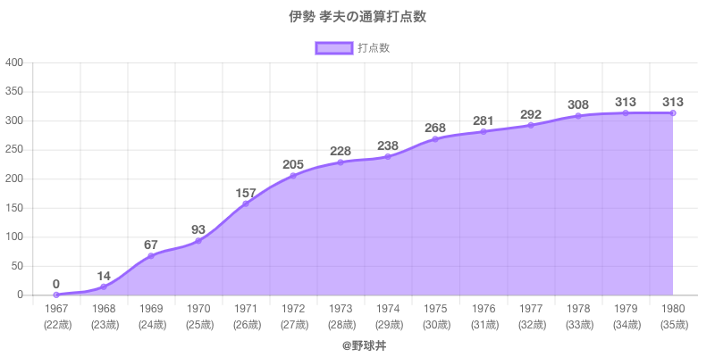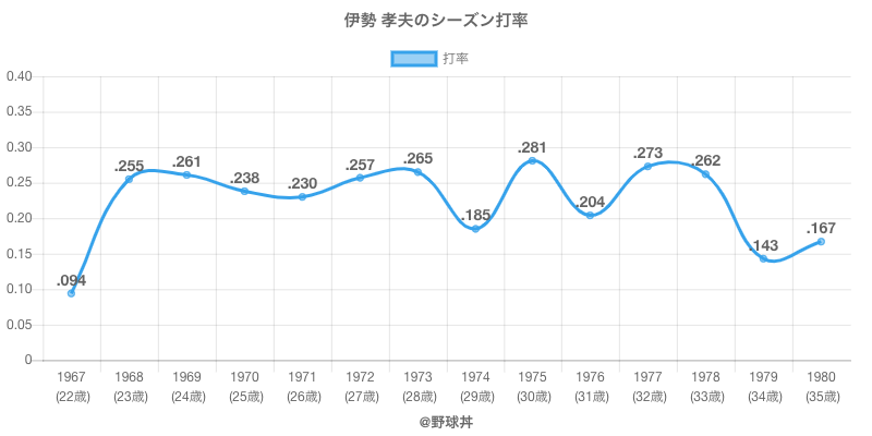 | 1967 | 近鉄バファローズ | 27 | 32 | .094 | 3 | 0 | 0 |