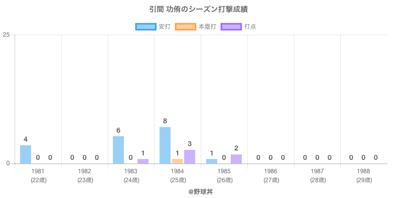 | 1981 | 阪神タイガース | 20 | 16 | .250 | 4 | 0 | 0 |
