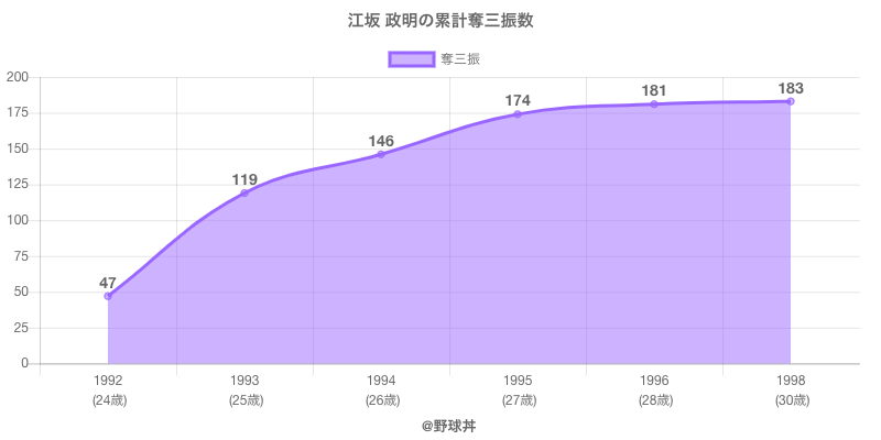 | 年度 | 球団 | 試合 | 投球回 | 防御率 | 勝利 | 敗北 | 完封 | 奪三振 |