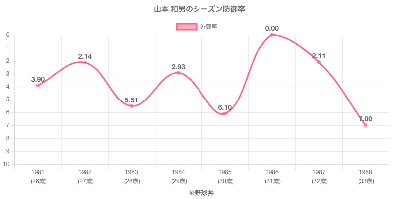 | 1981 | 広島東洋カープ | 30 | 3 | .000 | 0 | 0 | 0 |
