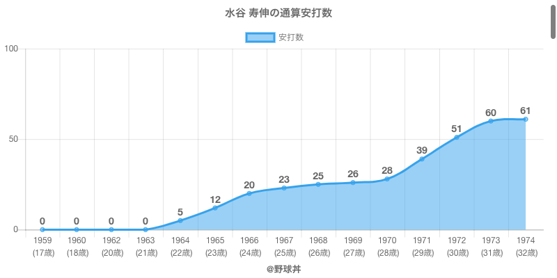 | 1964 | 27 | 84 | .333 | 2 | 4 | 2 | 55 | |