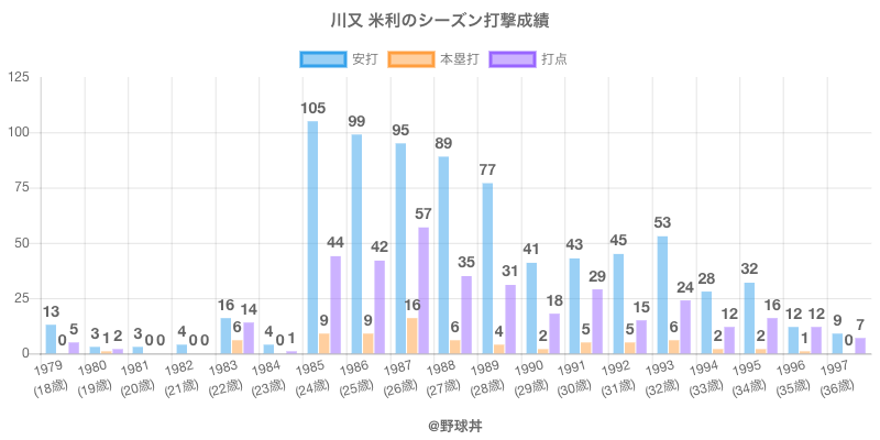 | 1979 | 中日ドラゴンズ | 46 | 47 | .277 | 13 | 0 | 5 |