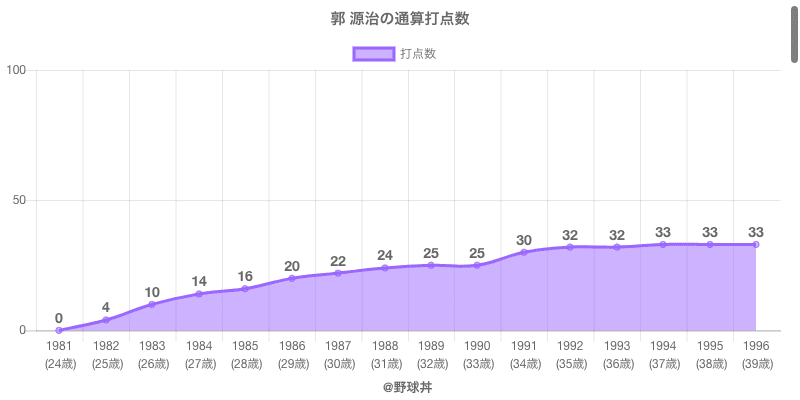 | 1981 | 中日ドラゴンズ | 6 | 21 | .333 | 1 | 2 | 0 | 17 |