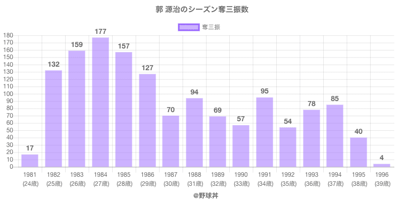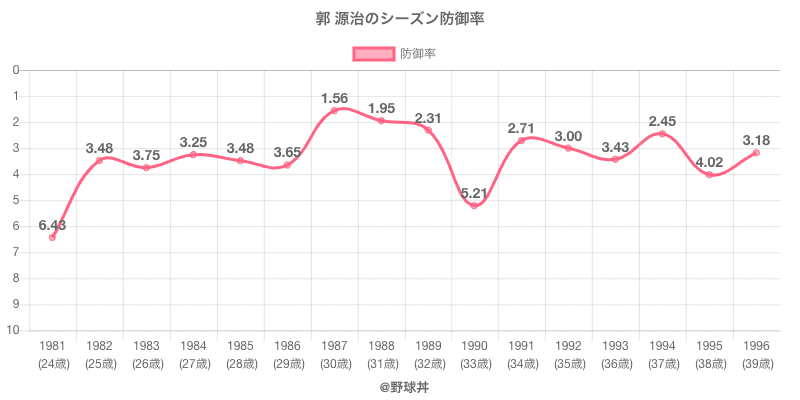 | 1983 | 中日ドラゴンズ | 10位 | 3.75 | 32 | 10 | 10 |