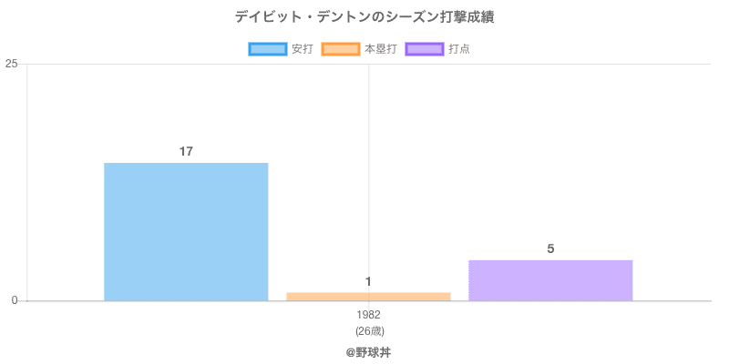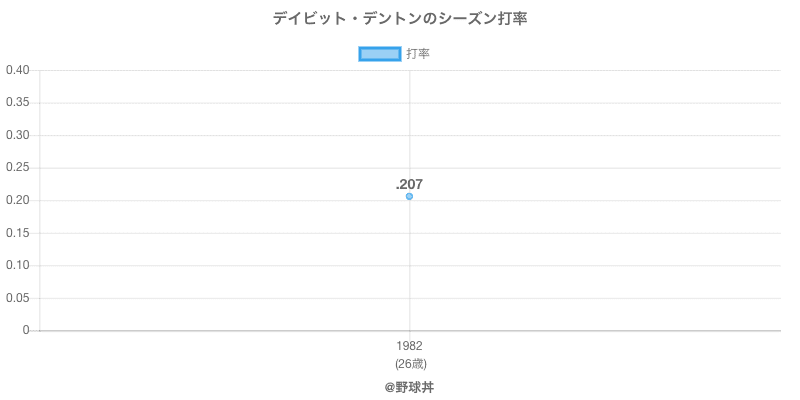 デイビット・デントン デイビット・デントン (69歳)は1982年から1982年にかけて活躍した元ヤクルト所属のプロ野球選手です。 投打は右投両打で、守備位置は主にができ、日本球界初出場は1982年で当時27歳でした。 同年代には赤松(元阪神)や柳原(元近鉄)がいます。 過去には1982年ヤクルトで全42試合出場ヒット17本という結果を残しています。