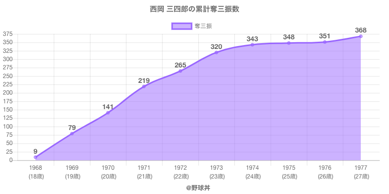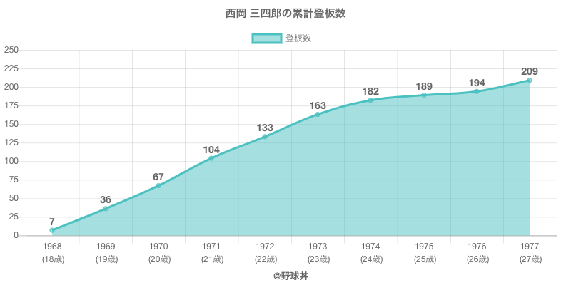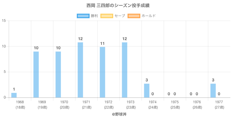 | 1977 | ヤクルトスワローズ | 15 | 27 | .750 | 3 | 1 | 0 | 17 |