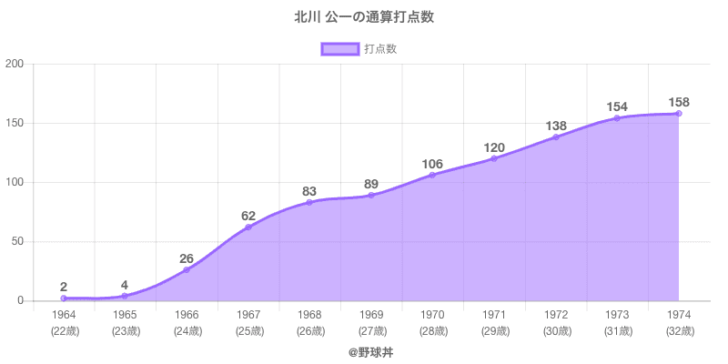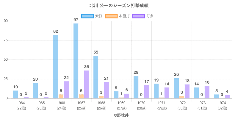 | 1964 | 近鉄バファローズ | 72 | 56 | .179 | 10 | 0 | 2 |