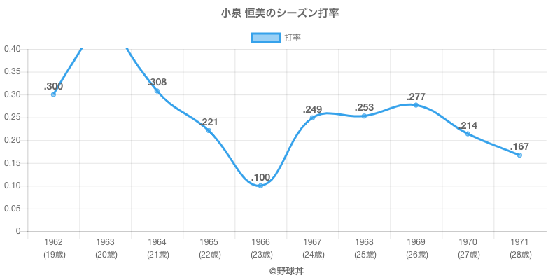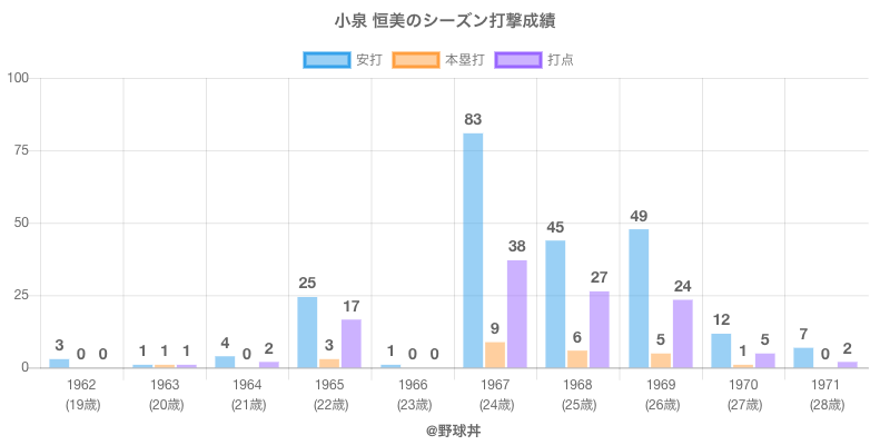 | 1971 | 中日ドラゴンズ | 44 | 42 | .167 | 7 | 0 | 2 |