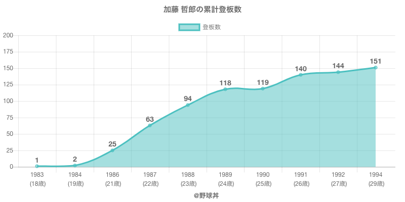 加藤 哲郎 (61歳)は1983年から1994年にかけて活躍した元近鉄や広島東洋所属のプロ野球選手です。 投打は右投右打で、守備位置は主に投手、日本球界初出場は1983年で当時19歳でした。 同年代には染宮(元ヤクルト)やデイビット(元福岡ダイエー)がいます。 過去には1987年近鉄で全38試合出場39奪三振や1988年近鉄で全31試合出場46奪三振という結果を残しています。