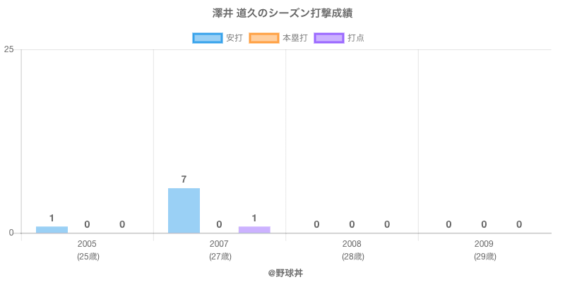 澤井 道久 (46歳)は2005年から2009年にかけて活躍した元中日所属のプロ野球選手です。 投打は右投両打で、守備位置は主に遊撃手・二塁手ができ、日本球界初出場は2005年で当時26歳でした。 同年代にはライアン(元埼玉西武)や小田(元北海道日本ハム)がいます。 過去には2005年中日で全46試合出場ヒット1本や2007年中日で全25試合出場ヒット7本という結果を残しています。