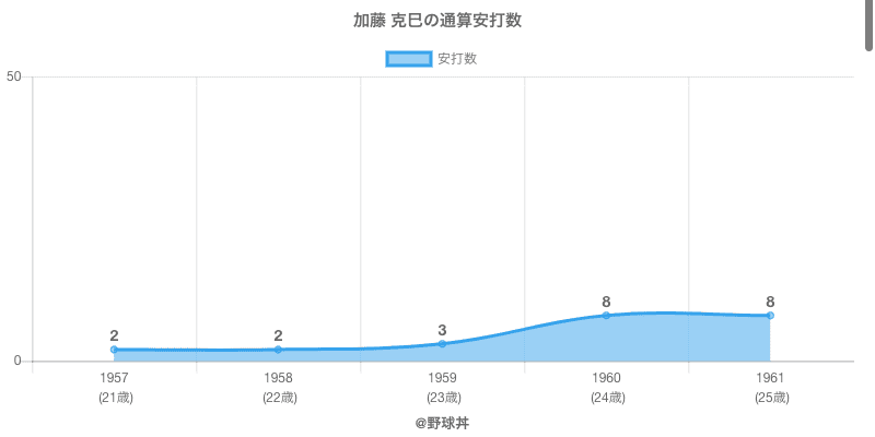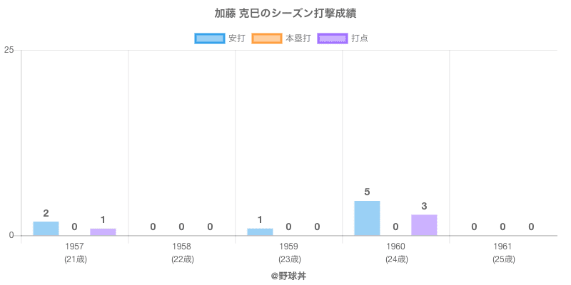 | 1957 | 読売ジャイアンツ | 10 | 9 | .222 | 2 | 0 | 1 |