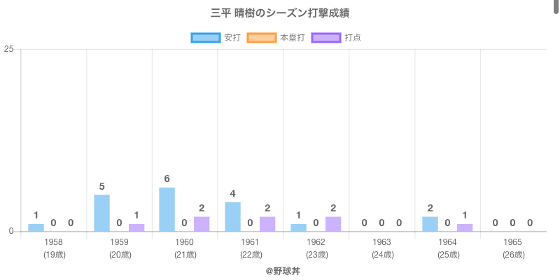| 1958 | 毎日大映オリオンズ | 42 | 26 | .038 | 1 | 0 | 0 |