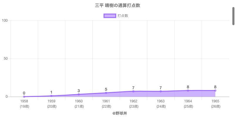 | 1958 | 毎日大映オリオンズ | 42 | 116 | .417 | 5 | 7 | 3 | 78 |