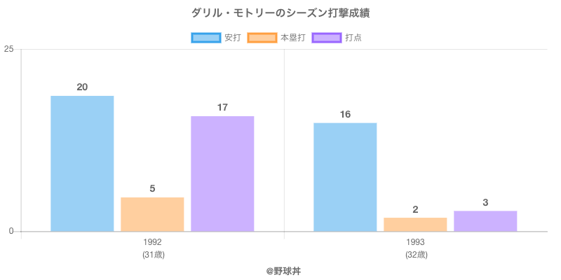 ダリル・モトリー (65歳)は1992年から1993年にかけて活躍した元千葉ロッテ所属のプロ野球選手です。 投打は右投右打で、守備位置は主にができ、日本球界初出場は1992年で当時32歳でした。 同年代には栗岡(元中日)や柴原(元オリックス)がいます。 過去には1992年千葉ロッテで全25試合出場17打点や1993年千葉ロッテで全19試合出場ヒット16本という結果を残しています。