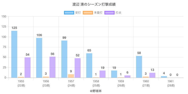 | 1955 | 阪急ブレーブス | 132 | 413 | .303 | 125 | 2 | 54 |