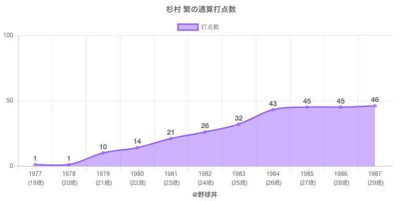1977 ヤクルトスワローズ 32 18 .167 3 0 1
