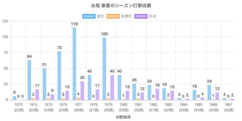 | 1979 | 近鉄バファローズ | 120 | 323 | .310 | 100 | 3 | 40 |