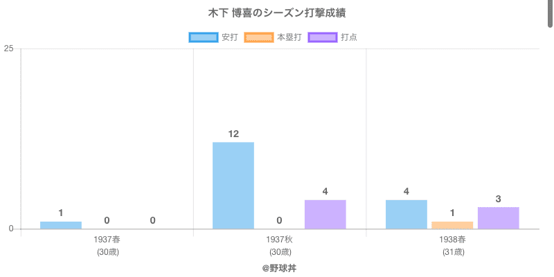 | 1937春 | 名古屋軍 | 24 | 57 | .211 | 12 | 0 | 4 |