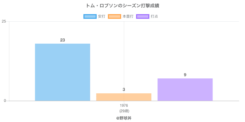 トム・ロブソン (79歳)は1976年から1976年にかけて活躍した元南海所属のプロ野球選手です。 投打は右投右打で、守備位置は主にができ、日本球界初出場は1976年で当時30歳でした。 同年代には植木(元阪神)門谷(元広島)がいます。 過去には1976年南海で全37試合出場ヒット23本という結果を残しています。