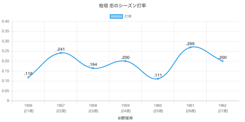| 1956 | 広島カープ | 32 | 34 | .118 | 4 | 0 | 1 |