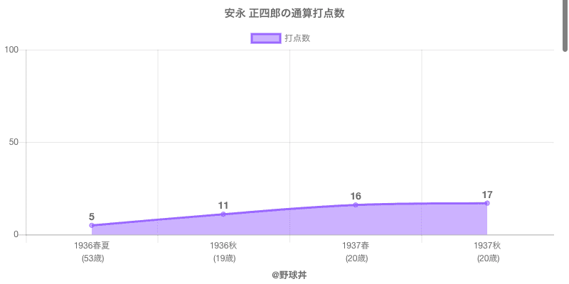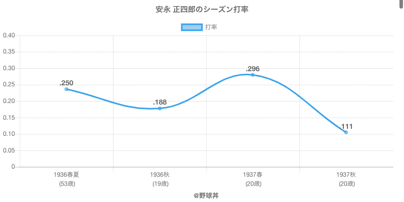| 1937春 | 25 | 54 | .296 | 16 | 0 | 5 | |