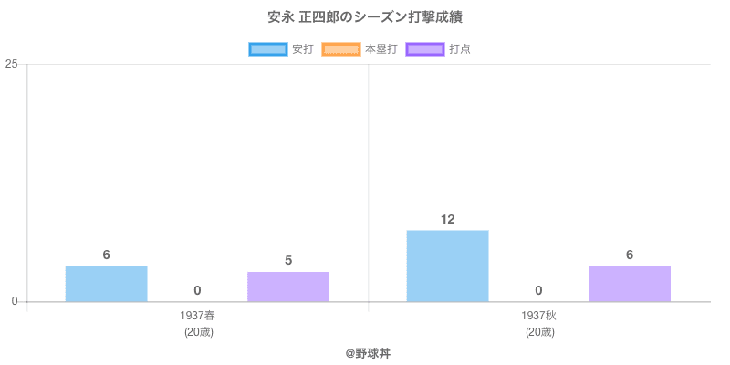| 1936秋 | 22 | 64 | .188 | 12 | 0 | 6 | |