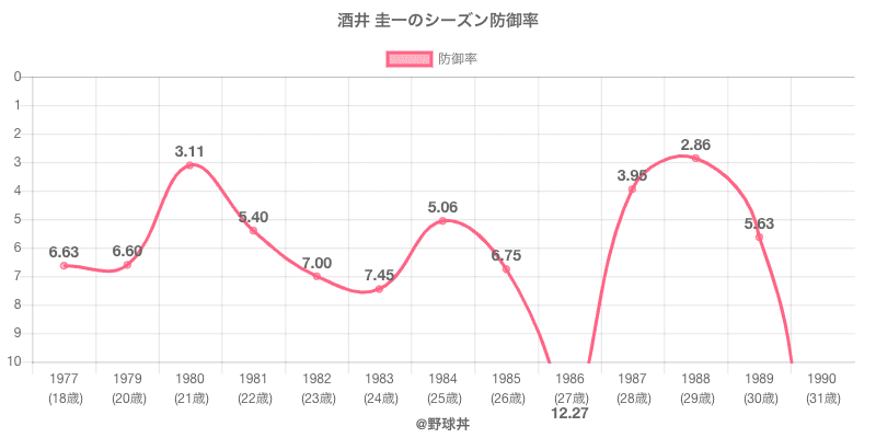 年度 球団 試合 投球回 防御率 勝利 敗北 完封 奪三振