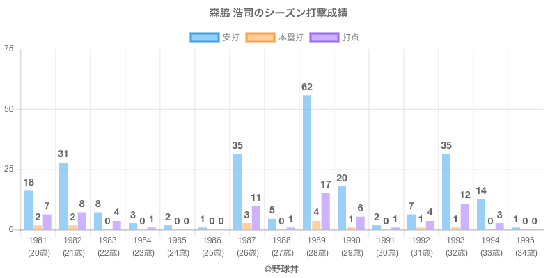 森脇 浩司 (65歳)は1981年から1995年にかけて活躍した元広島東洋や南海所属のプロ野球選手です。 投打は右投右打で、守備位置は主に遊撃手・二塁手・三塁手ができ、日本球界初出場は1981年で当時21歳でした。 同年代にはマイク(元福岡ダイエー)や黒原(元西武)がいます。 過去には1989年福岡ダイエーで全98試合出場ヒット62本や1993年福岡ダイエーで全98試合出場ヒット35本という結果を残しています。