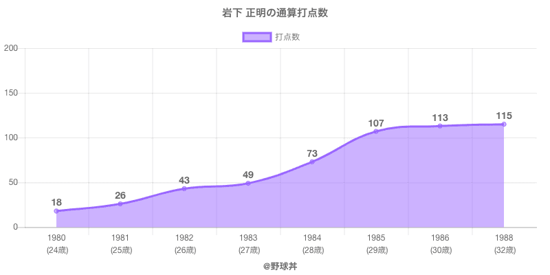 | 1980 | ヤクルトスワローズ | 75 | 108 | .296 | 32 | 2 | 18 |