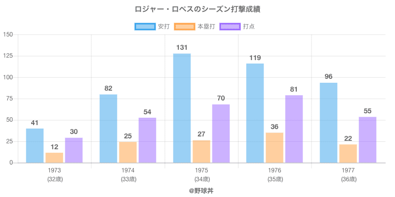 ロジャー・ロペス (85歳)は1973年から1977年にかけて活躍した元ヤクルトや太平洋所属のプロ野球選手です。 投打は左投左打で、守備位置は主にができ、日本球界初出場は1973年で当時33歳でした。 同年代には山尾(元阪神)滝村(元広島)がいます。 過去には1975年ヤクルトで全123試合出場ヒット131本や1976年ヤクルトで全120試合出場ヒット119本という結果を残しています。