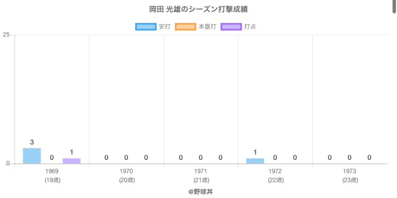 | 1969 | 近鉄バファローズ | 31 | 46 | .065 | 3 | 0 | 1 |