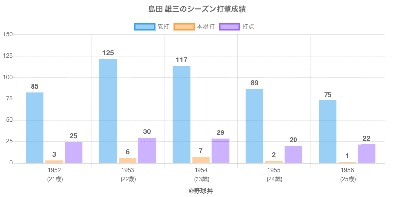 | 1952 | 大映スターズ | 110 | 393 | .216 | 85 | 3 | 25 |