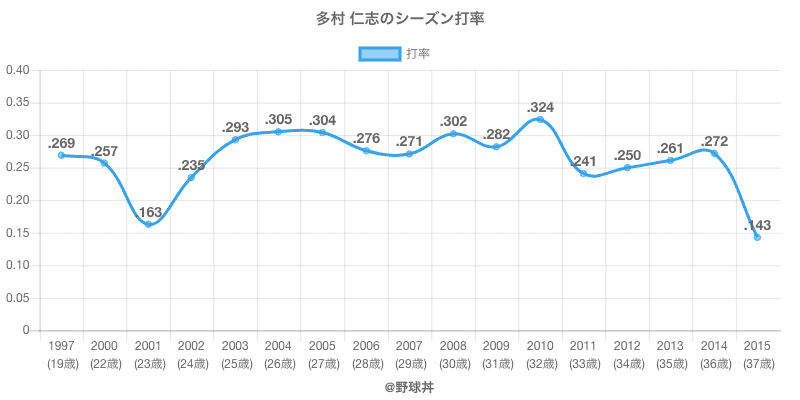 | 2010 | 福岡ソフトバンクホークス | 5位 | .324 | 166 | 27 | 89 |