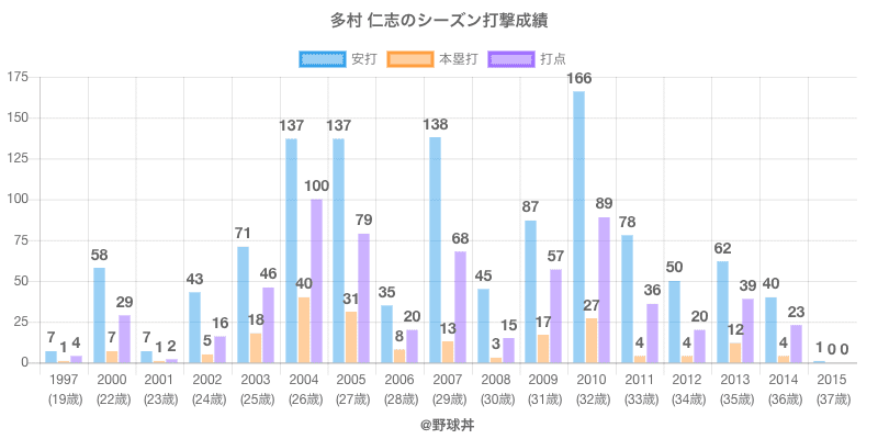 | 2013 | 横浜DeNAベイスターズ | 96 | 238 | .261 | 62 | 12 | 39 |