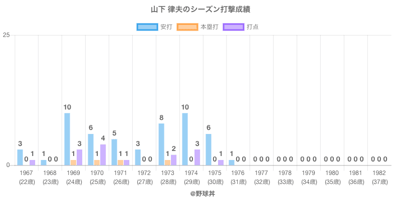 | 1967 | 大洋ホエールズ | 23 | 9 | .333 | 3 | 0 | 1 |