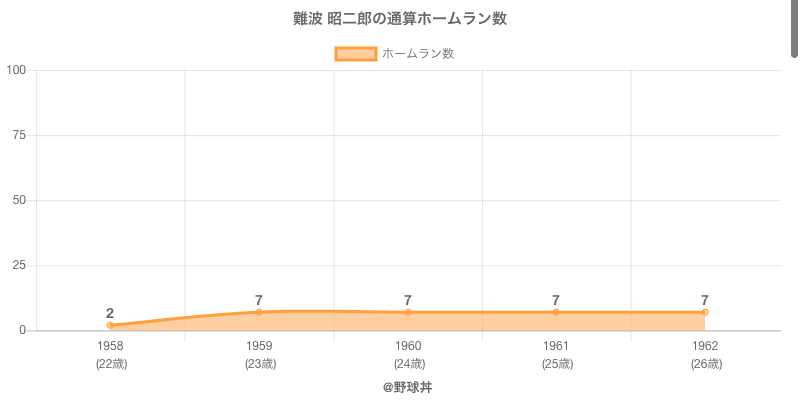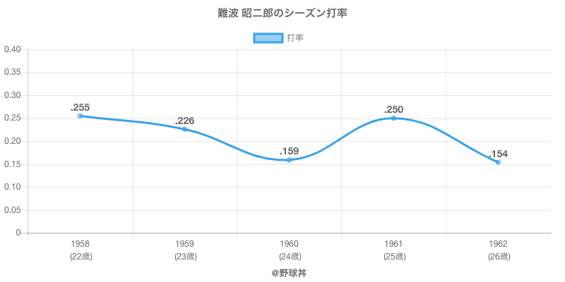 | 1958 | 読売ジャイアンツ | 40 | 47 | .255 | 12 | 2 | 5 |