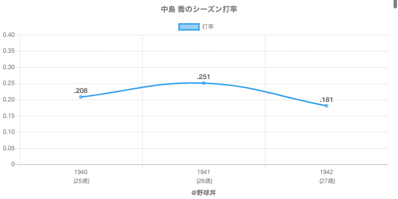 中島 喬は1940年から1942年にかけて活躍した元阪急所属のプロ野球選手です。 投打は右投右打で、守備位置は主にができ、日本球界初出場は1940年で当時26歳でした。 同年代には杉浦(元国鉄)藤田(元国鉄)がいます。 過去には1940年阪急で全83試合出場ヒット58本や1941年阪急で全61試合出場ヒット54本という結果を残しています。