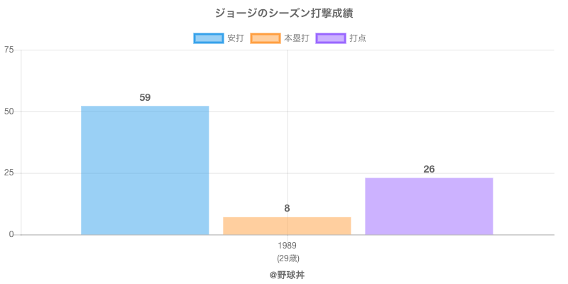ジョージ (66歳)は1989年から1989年にかけて活躍した元中日所属のプロ野球選手です。 投打は右投右打で、守備位置は主にができ、日本球界初出場は1989年で当時30歳でした。 同年代には荻原(元日本ハム)仁村(元中日)がいます。 過去には1989年中日で全53試合出場ヒット59本という結果を残しています。