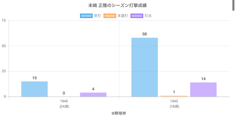 | 1946 | ゴールドスター | 5 | 10 | .000 | 0 | 1 | 0 | 3 |