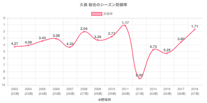 | 2003 | 読売ジャイアンツ | 38 | 109 | .462 | 6 | 7 | 0 | 105 |