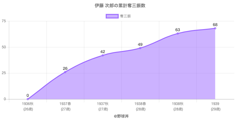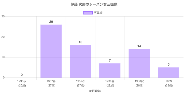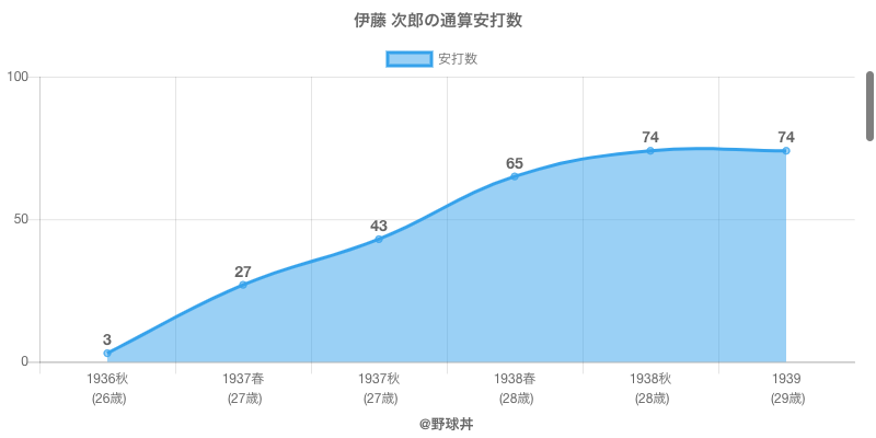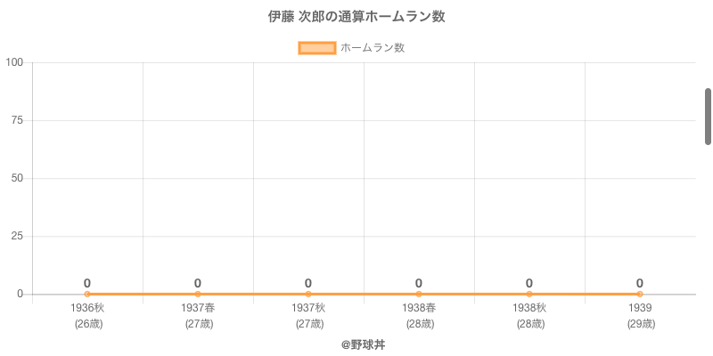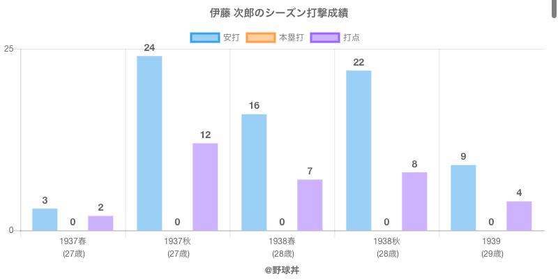 | 1937春 | 40 | 126 | .190 | 24 | 0 | 12 | |