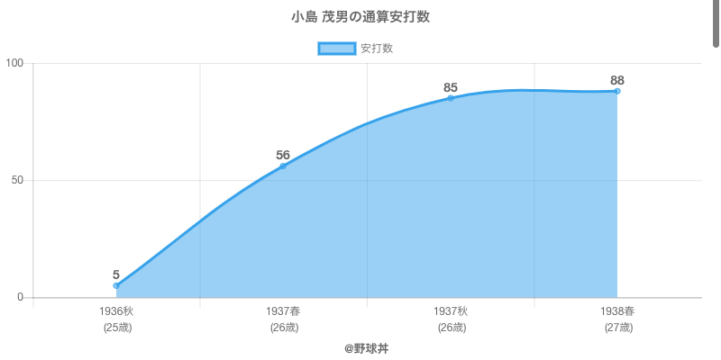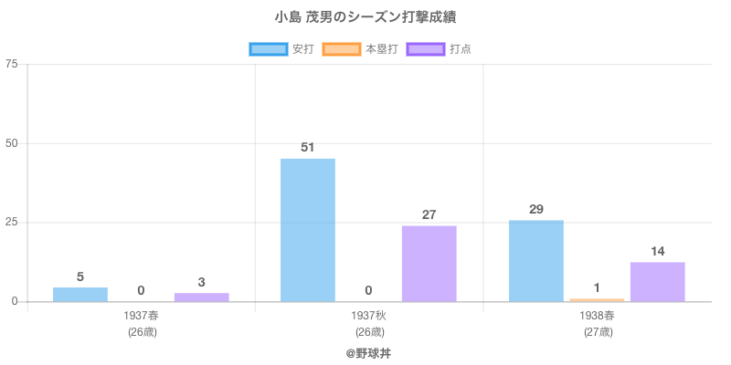 小島 茂男は1936秋年から1938春年にかけて活躍した元名古屋所属のプロ野球選手です。 投打は右投右打で、守備位置は主にができ、日本球界初出場は1936秋年で当時25歳でした。 同年代には野村(元イーグルス)岸本(元阪急)がいます。 過去には1937春年名古屋で全53試合出場ヒット51本や1937秋年名古屋で全43試合出場ヒット29本という結果を残しています。