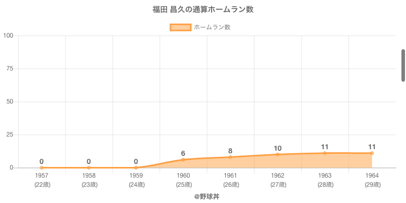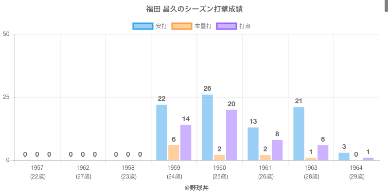 | 1963 | 読売ジャイアンツ | 63 | 74 | .284 | 21 | 1 | 6 |