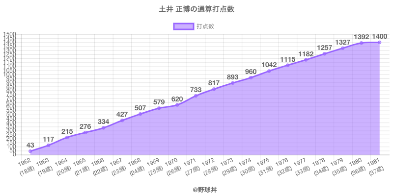 土井 正博 (81歳)は1962年から1981年にかけて活躍した元西武や太平洋所属のプロ野球選手です。 投打は右投右打で、守備位置は主に外野手・一塁手ができ、日本球界初出場は1962年で当時19歳でした。 同年代には高岡(元広島東洋)相羽(元阪神)がいます。 過去には1963年近鉄で全150試合出場ヒット156本や1964年近鉄で全147試合出場ヒット168本という結果を残しています。 また1度主要タイトルを獲得しています。(最多本塁打1回)