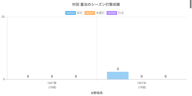 | 1937春 | 大東京軍 | 9 | 14 | .214 | 3 | 0 | 0 |