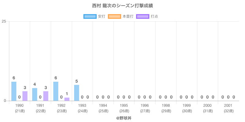 | 1990 | ヤクルトスワローズ | 35 | 54 | .111 | 6 | 0 | 3 |