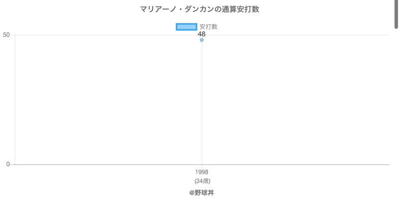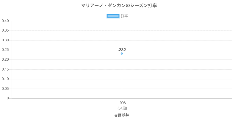 マリアーノ・ダンカン (62歳)は1998年から1998年にかけて活躍した元読売所属のプロ野球選手です。 投打は右投右打で、守備位置は主にができ、日本球界初出場は1998年で当時35歳でした。 同年代にはボビー(元福岡ダイエー)や義信(元中日)がいます。 過去には1998年読売で全63試合出場34打点という結果を残しています。
