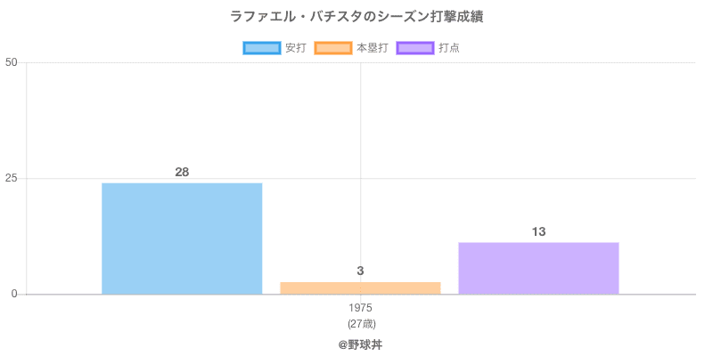 ラファエル・バチスタ (78歳)は1975年から1975年にかけて活躍した元ロッテ所属のプロ野球選手です。 投打は左投左打で、守備位置は主にができ、日本球界初出場は1975年で当時28歳でした。 同年代には藤田(元阪神)宇佐美(元読売)がいます。 過去には1975年ロッテで全48試合出場ヒット28本という結果を残しています。