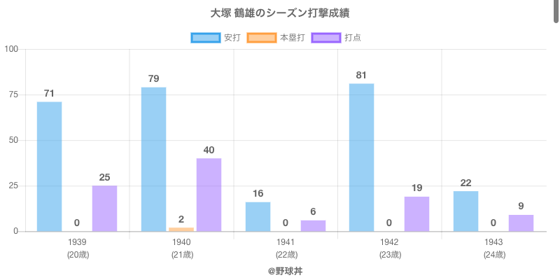| 1940 | 翼軍 | 104 | 374 | .211 | 79 | 2 | 40 |