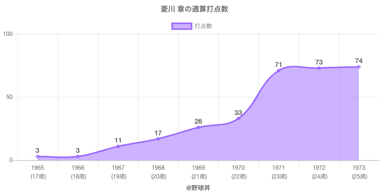 | 1965 | 中日ドラゴンズ | 34 | 29 | .207 | 6 | 1 | 3 |
